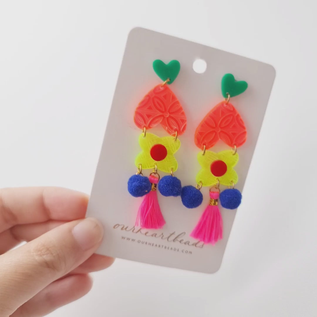 Batik Neon Tassel Earrings