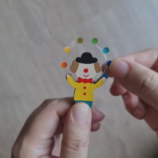 Don't be a clown—wear a clown! This playful Clown Juggler Brooch has a unique movement design that is as fun as it is unique. With bright colors and circus vibes, it's like having a little show on your lapel.